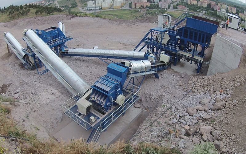Primer olarak mobil 140’lık çeneli kırıcı tercih edilmiş olup, iri boyutlu malzemeyi kırarak darbeli kırıcıya beslenebilecek boyuta indirgemekte ve mobil şasesi ile taşınabilirlik avantajı sunmaktadır. Sekonder olarak ise yüksek kapasite ve verimliliğe sahip sabit SMK1317 darbeli kırıcı seçilmiştir. Darbeli kırıcıdan çıkan malzeme, işletme ve bakım kolaylığı ile öne çıkan 2400X 6000 mm 4 katlı sabit yatay elekte boyutlandırılarak iki farklı ürün elde edilmiş, geri dönüş malzemesi ise sekonder darbeli kırıcıya gönderilmiştir. By-pass malzemesi, talep edilen yönde ve açıda dönebilmesi sayesinde daha geniş alanlı stok imkanı sağlayan 600 X 45000 mm ölçülerinde radyal bir bantlı konveyör ile sisteme girmeden uzaklaştırılmıştır.