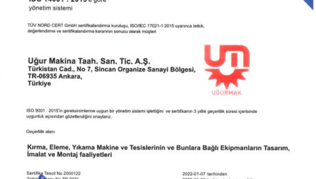 Kırma Eleme sektöründe öncü olan UĞUR MAKİNA kalitesini uluslararası alanda belgelemek, müşteri memnuniyetini artırmak, çevre ve ISG’ye verdiği önemle paydaşlarına mükemmelliğe olan taahhüdünü sergilemek için Tüv Nord ’la entegre kalite yönetim sistemi belgelendirmesin de çalışmaya başlamış ve denetimi başarıyla geçmiştir. Denetimi tamamlamanın mutluluğunu sizlerle paylaşmaktan onur duyuyoruz. Uğur Makina olarak kalitemizden ödün vermeyip basitleştirilmiş süreç