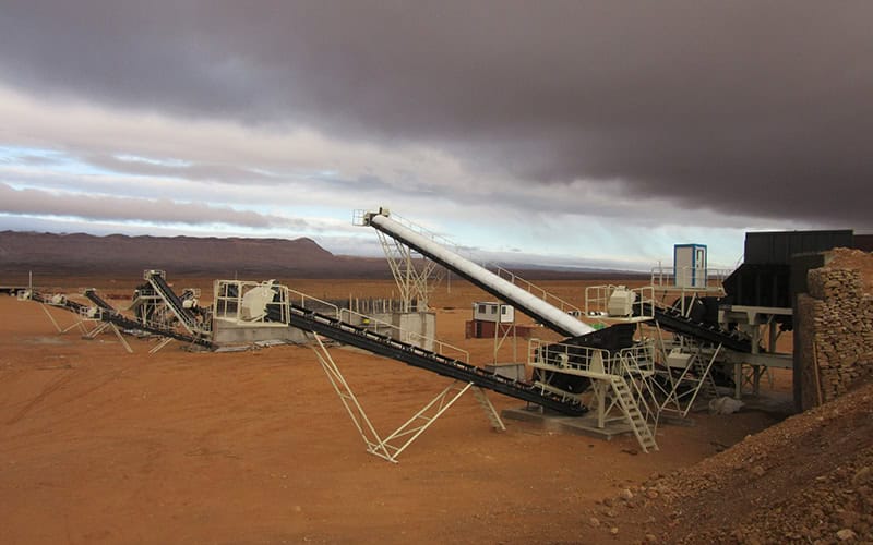 Primer kırma aşamasından çıkan malzeme ara stokta biriktirilerek 2 adet UĞURMAK marka 1200×2000 ebatlarındaki tünel besleyici ile darbeli kırıcı ön eleğine beslenmektedir. Tünel besleyiciler, zorlu şartlarda dahi yüksek performans gösterir ve çeşitli boyutlardaki malzemeler için uygundur. UĞURMAK marka UMIE1430 2 katlı ızgaralı ön elek ise istenilen boyutta malzemeyi sekonder kırıcıya girmeden ürün olarak almaya olanak sağlar. Böylece belirli boyuttaki malzeme hem sistemden ayrılarak ürün olarak alınabilir hem de sekonder darbeli kırıcıya gereksiz malzeme girmesini önleyerek kırıcının daha verimli çalışmasını sağlar.