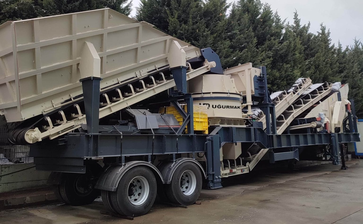 UĞURMAK olarak tekerlekli yarı mobil ve paletli mobil grup seçenekleri ile müşterilerimizin çeşitli ihtiyaçlarına cevap verebiliyoruz. İmalatını yaptığımız kırıcı ve elekler sabit şasi üzerinde kullanılabildiği gibi yol standartlarının izin verdiği ölçüde mobil şasi üzerine de adapte edilebilmektedir. UGURMAK mobil grupları daha kısa sürede ve kolay kurulum avantajı sağlayan hidrolik ayaklar, katlanabilir konveyör ve bunker haznesi seçenekleri gibi kompakt çözümlerle müşterilerimizin ihtiyaçlarına tam olarak cevap verecek şekilde tasarlanmıştır. Verimli bir tesis tasarımı için gereken mobil kırıcılar, mobil elekler veya aynı mobil şasi üzerinde hem kırma hem de eleme işlemlerini gerçekleştiren kapalı devre mobil kırma eleme grubu tasarımlarımız mevcuttur.